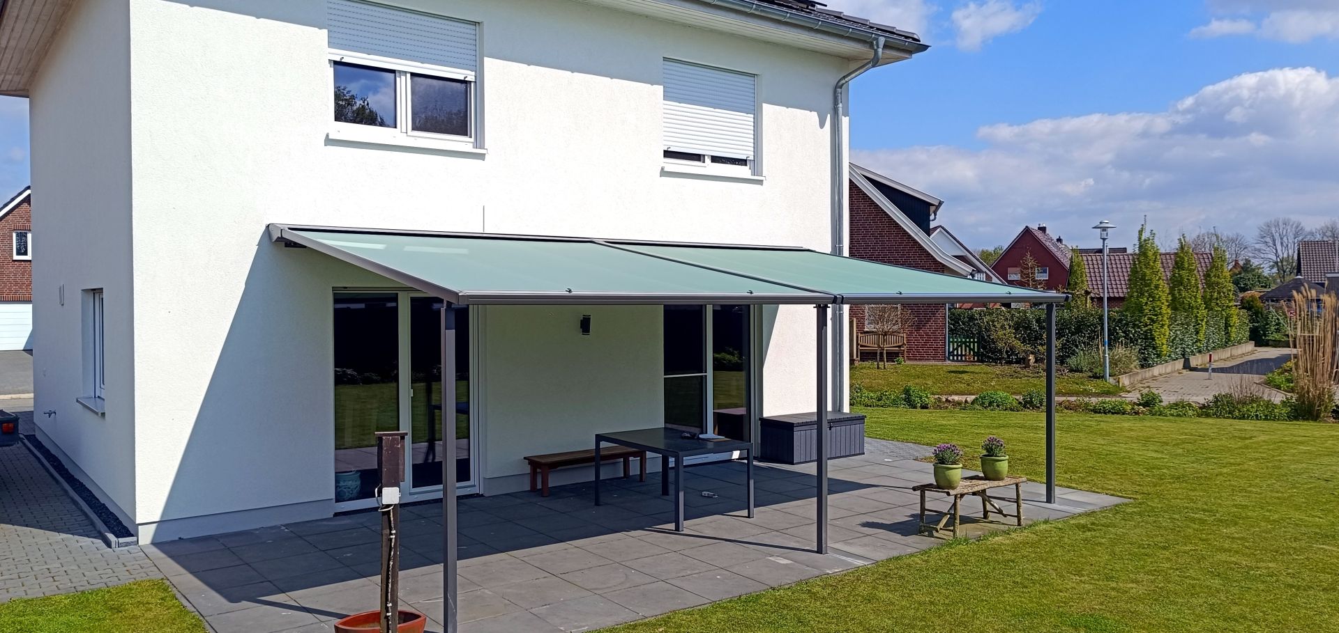 Die Pergolamarkise ist eine raffinierte Mischung aus ausfahrbarem Sonnenschutz und einer feststehenden Pergola. Mit ihren filigranen Stützen, die die Schienen für den Markisenstoff tragen, vereint sie somit die Flexibilität einer Markise mit der Stabilität einer im Boden verankerten Pergola. Dadurch ist sie auch speziell für exponierte Lagen mit viel Wind die ideale Beschattungsmöglichkeit und kann ab einem Neigungswinkel von 14° auch als Regenschutz verwendet werden. Die Pergolamarkise kann sowohl als Terrassenmarkise sowie als Balkonmarkise zum Einsatz kommen.