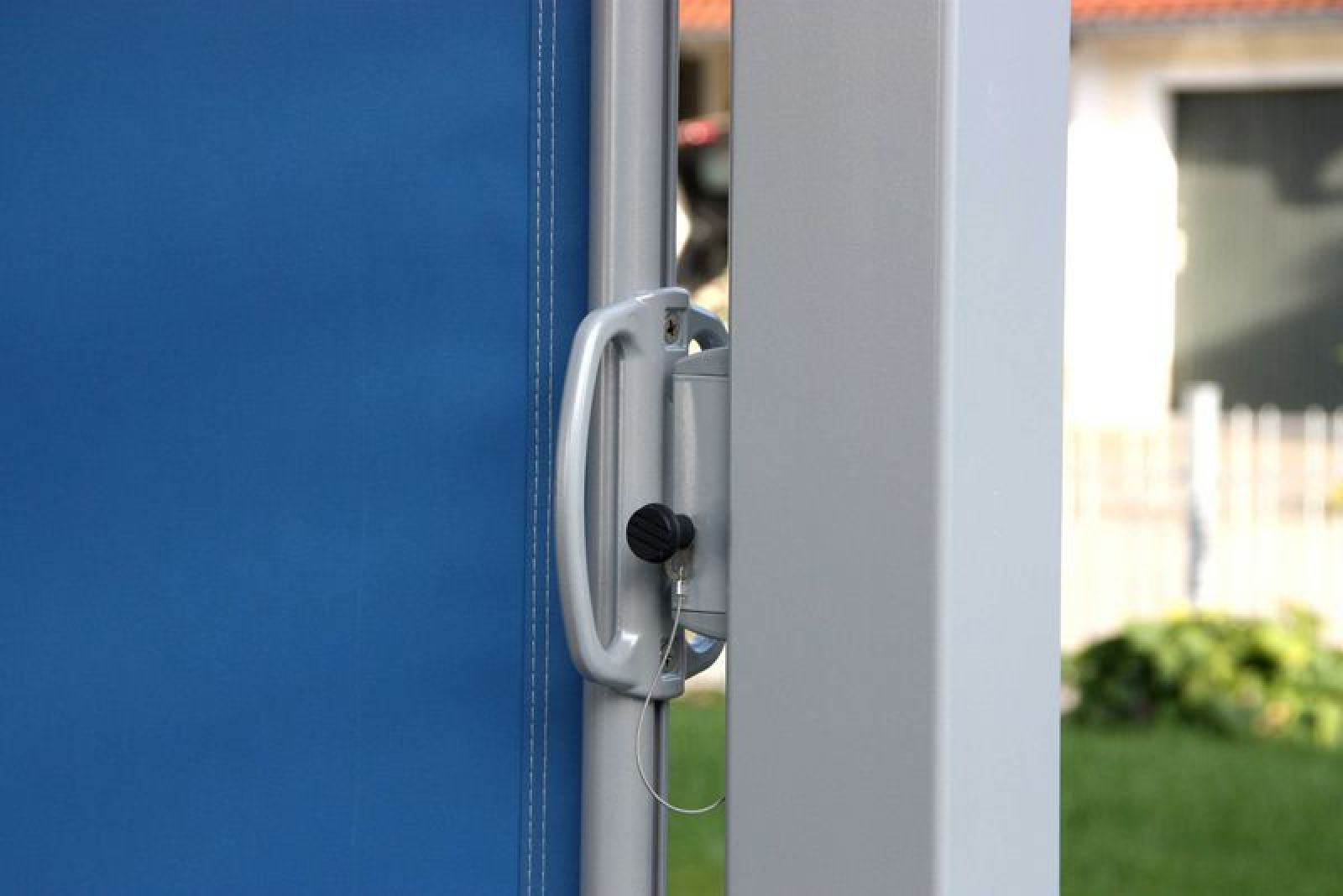 Vario-Volant: Optional mit einem in die Fallstange integrierten Vario-Volant erhältlich. Der Vario-Volant fungiert als vertikales Rollo und schützt somit auch in den Abendstunden bei tiefstehender Sonne.